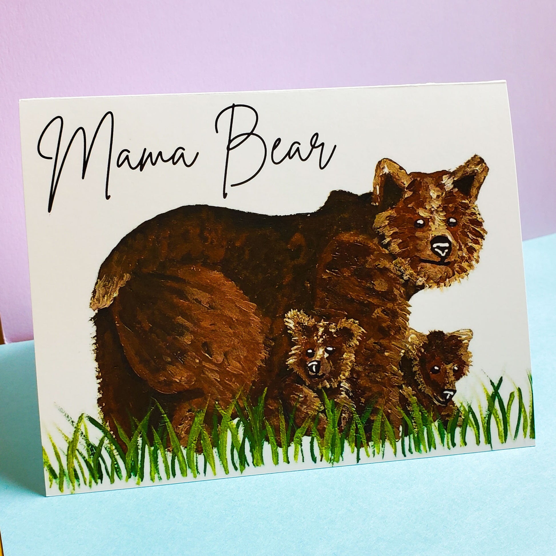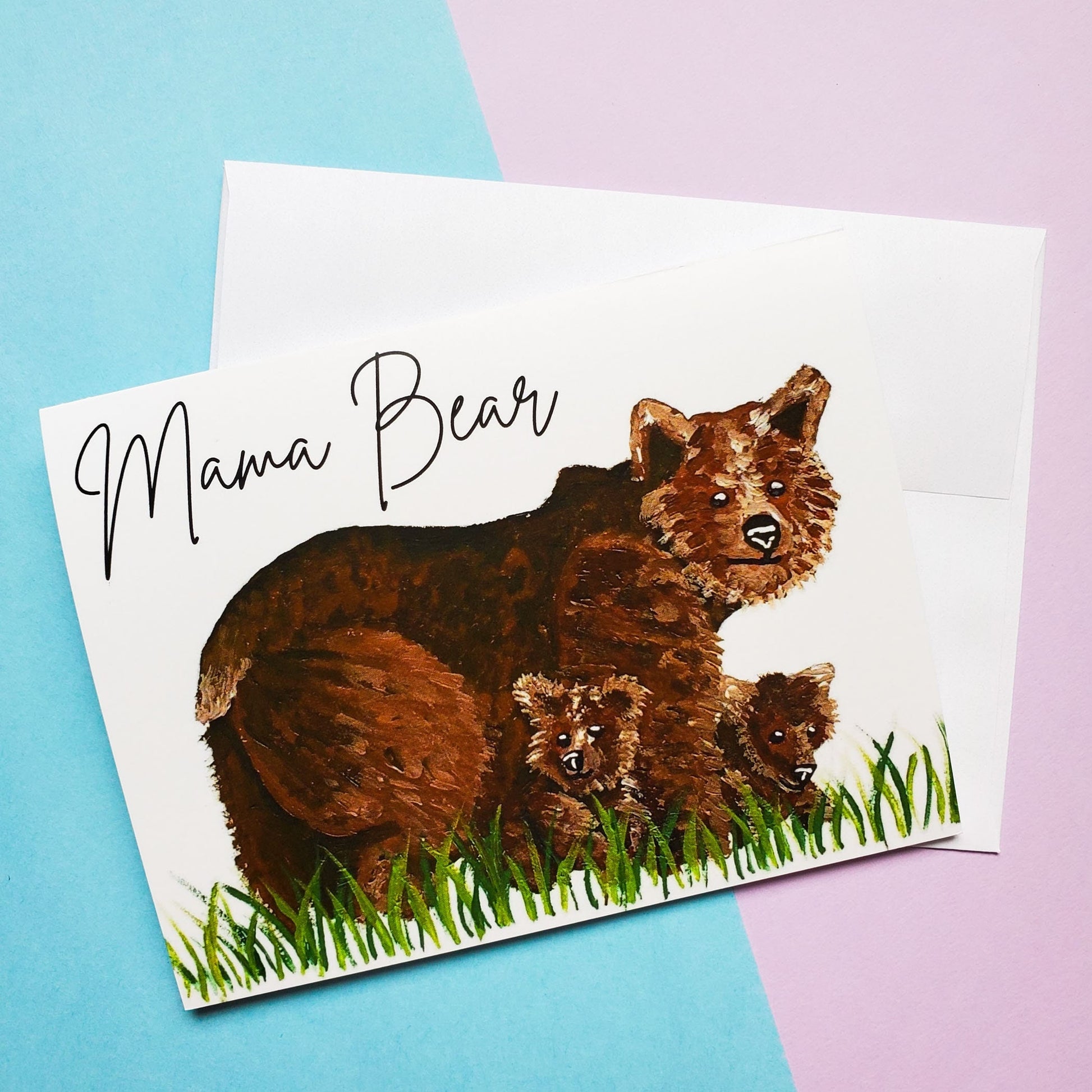 4.25 x 5.5 inch Mama Bear greeting card with a white envelope.